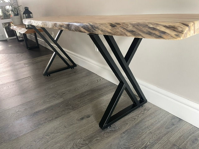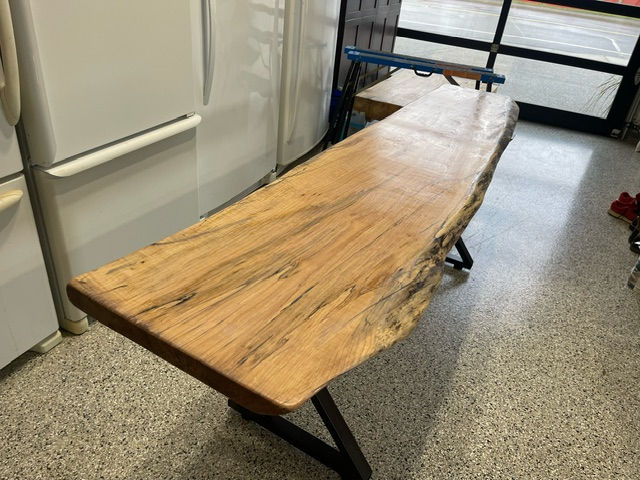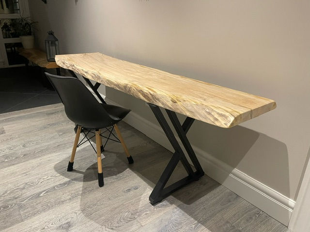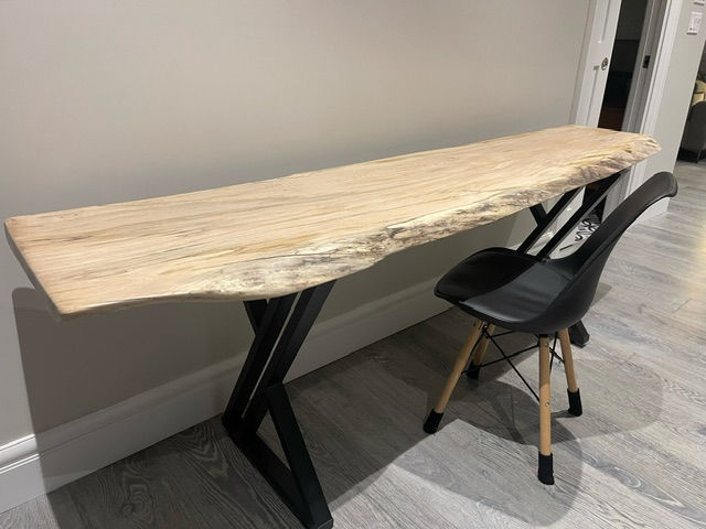 Solid maple wood live edge desk, perfect addition for any home or office. Add warmth to any space, this desk is solid Maple and have several beautiful pieces to choose from 48 to 72 inches long by 20-24 inches wide and stand 30 inches high.
