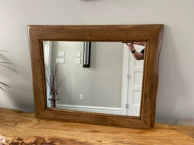 Solid live edge framed mirror, perfect addition for any home or office. Add warmth to any space, this custom live edge mirror will look spectacular in your space ! Custom sizes avialable.