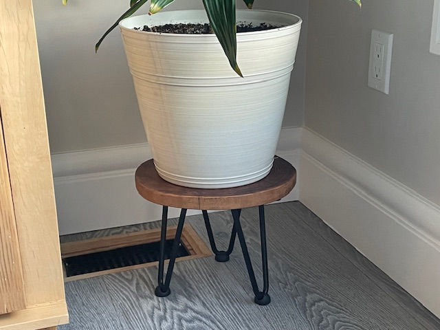 Solid wood tops and solid metal legs, super sturdy and can handle any weight or size of plant.