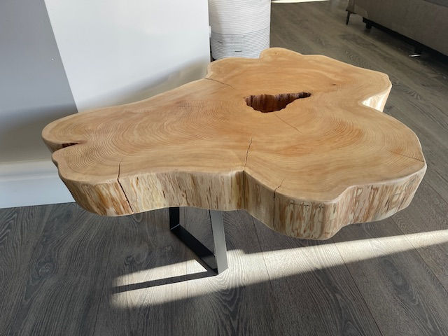 Many fully finished pieces to choose from, just choose your legs and you can take your piece right away or quick turnaround and finish time for your custom piece from a large selection of beautiful unique slabs and blanks.